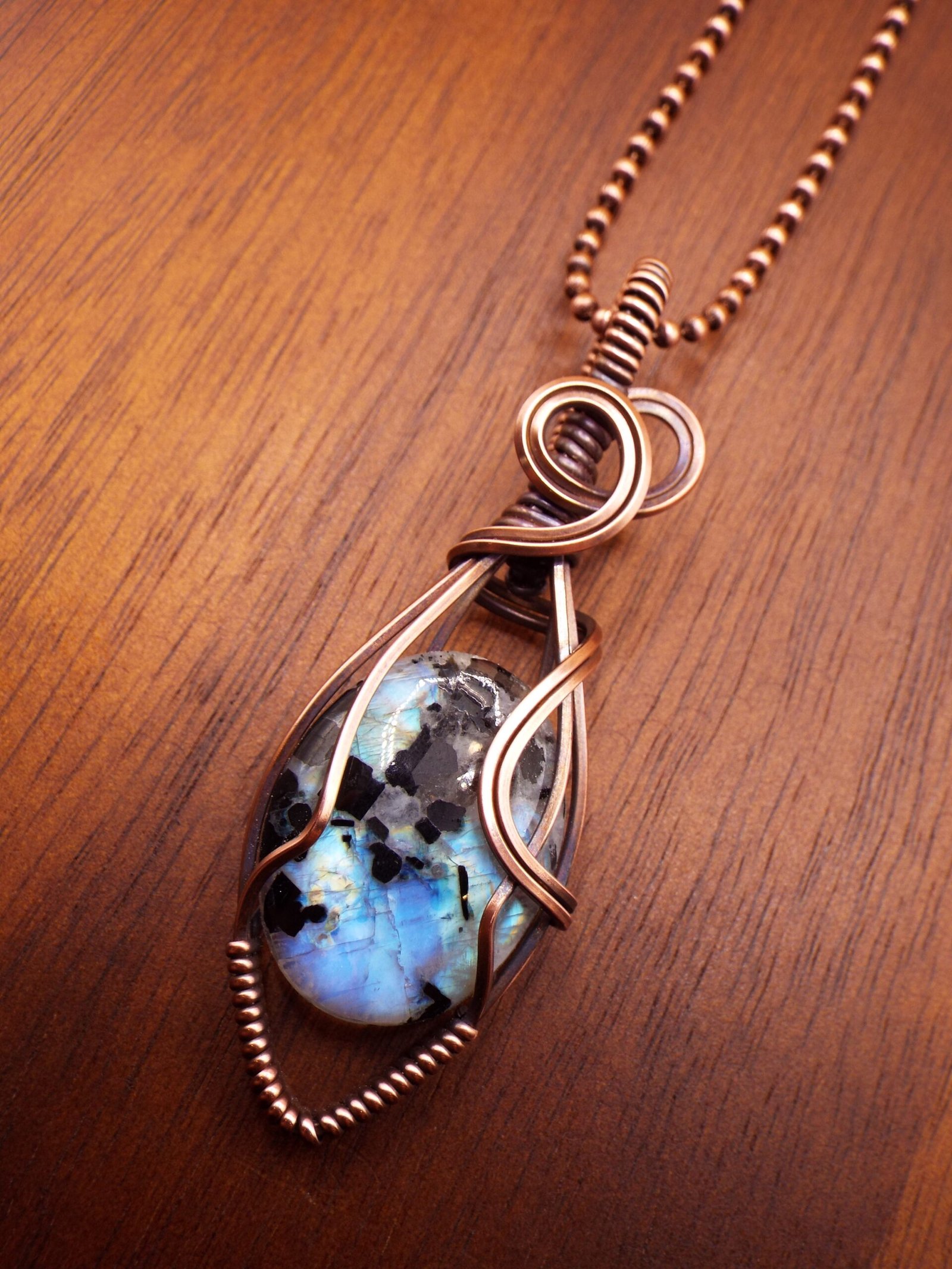 Rainbow Moonstone Necklace in CopperRainbow Moonstone Necklace in Copper
